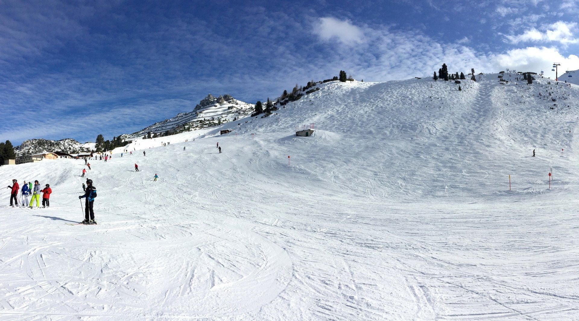 Sehr viele gemütliche, urige Hütten, teilweise super breite Pisten.
