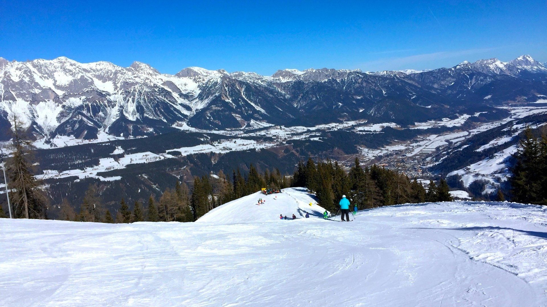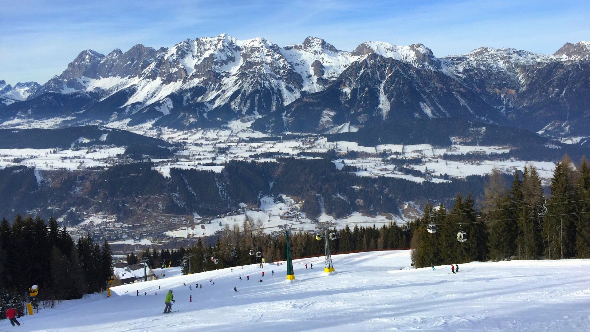 Die parallelen Berge der 4-Berge Skischaukel sind Planai, Hochwurzen, Hauser Kaibling und Reiteralm.